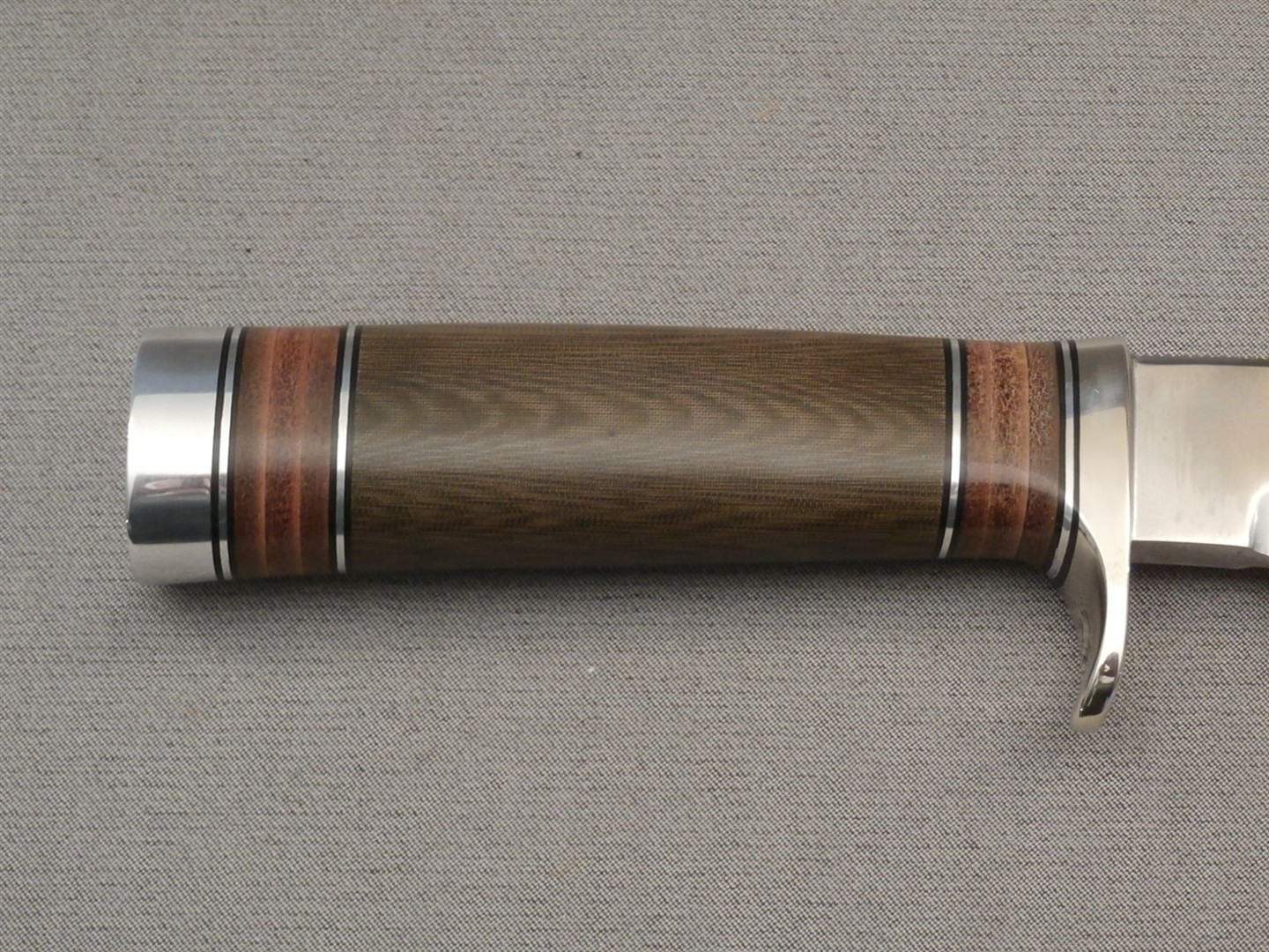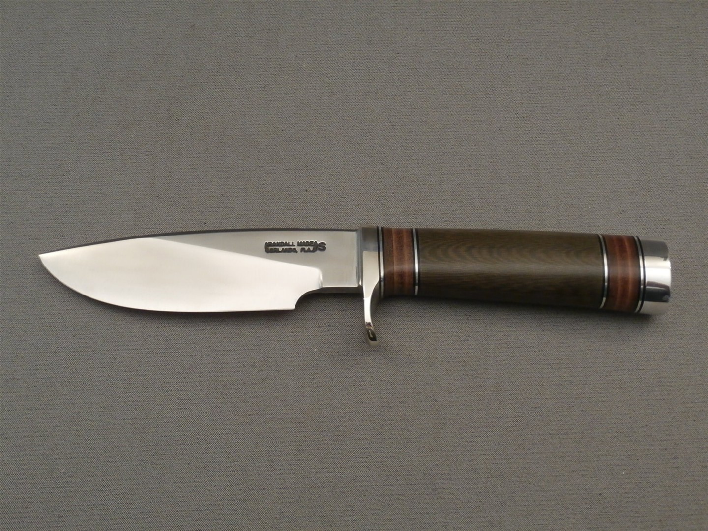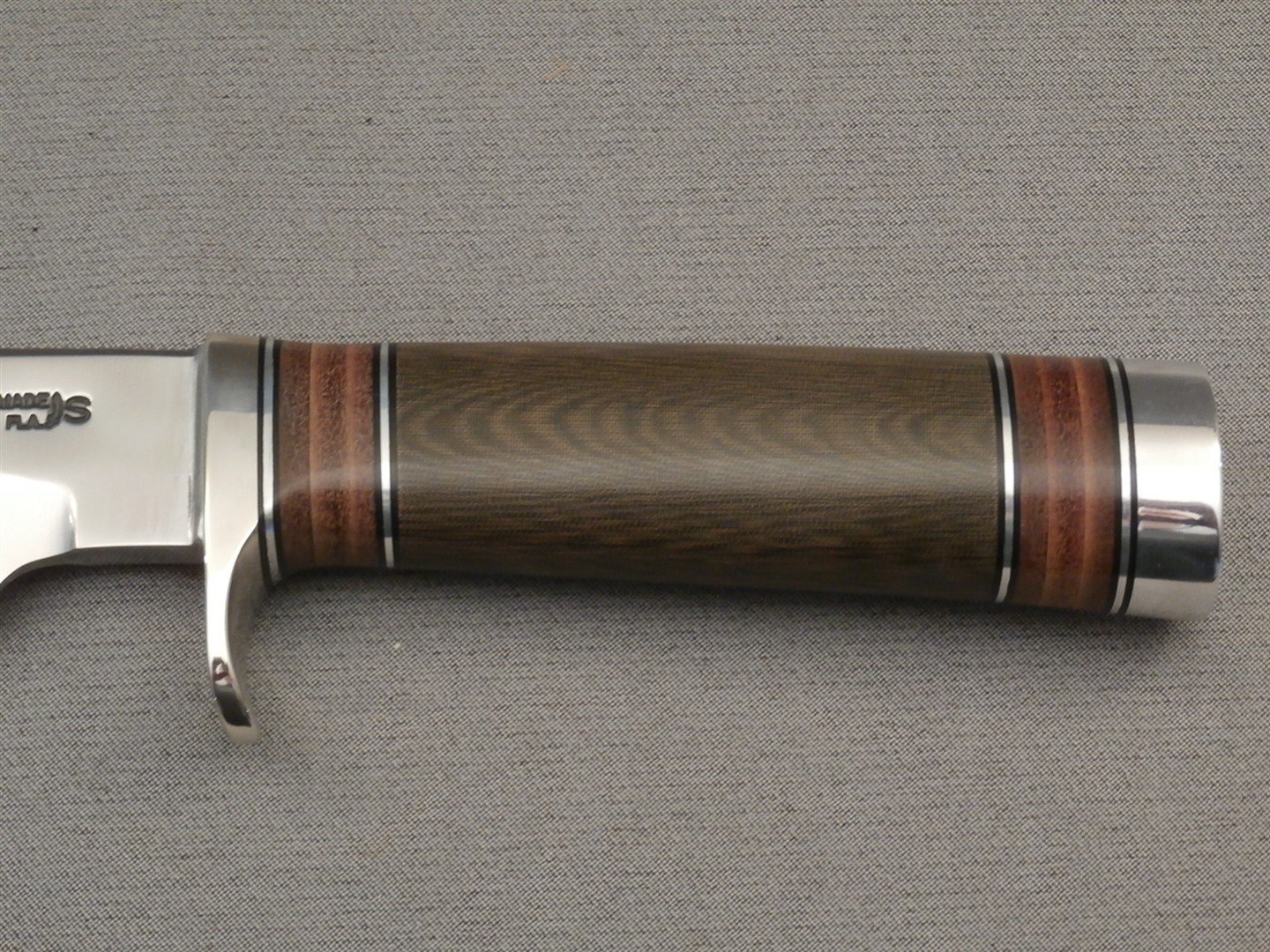 Thumb notch and top of hilt molded for thumb placement. Drop point hunter, similar to Model 11, but handle construction is reminiscent of 1930’s design. Model 25-5″ supplied with a cover sheath. Model 25-6″ supplied with a Model A sheath. Excellent skinning, outdoors knife.