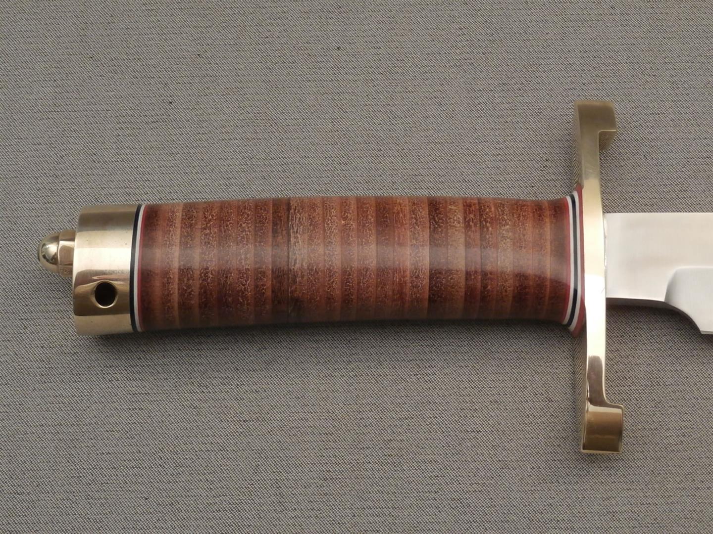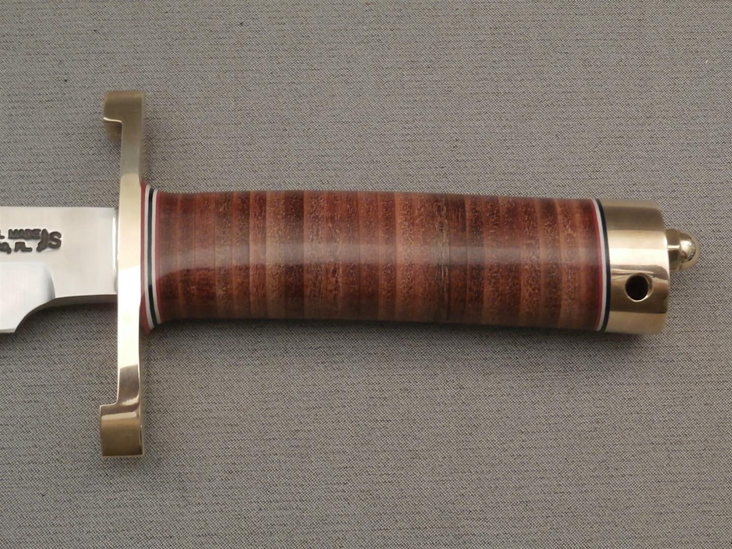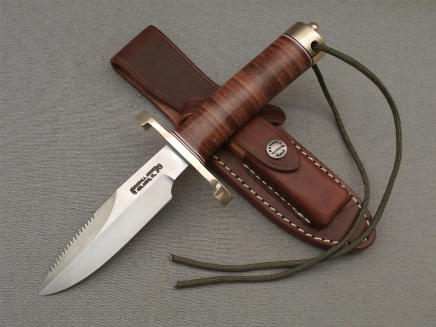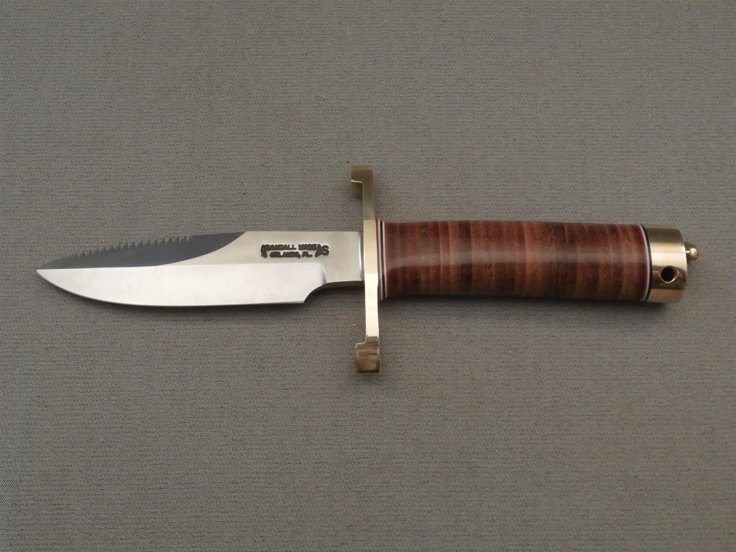 5″ blade of 1/4″ stock. Top cutting edge sharpened. A light-weight military design knife.